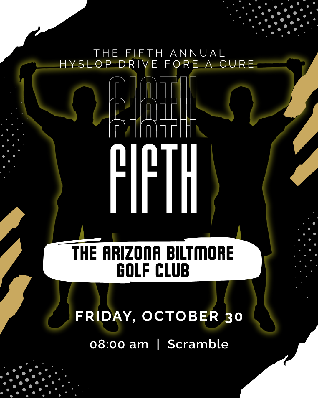 Date: Friday, October 30th, 2026Location: Arizona Biltmore Golf ClubTime: Arrival @ 7:00am, Shotgun Start at 8:00amFormat: 4 Person ScrambleCost: $220/per player OR $880/foursomeHyslop Drive Fore A Cure is a 501c3 Non-Profit designed to raise awareness and fund research for prostate cancer in partnership with the Movember Foundation and other benefactors.
